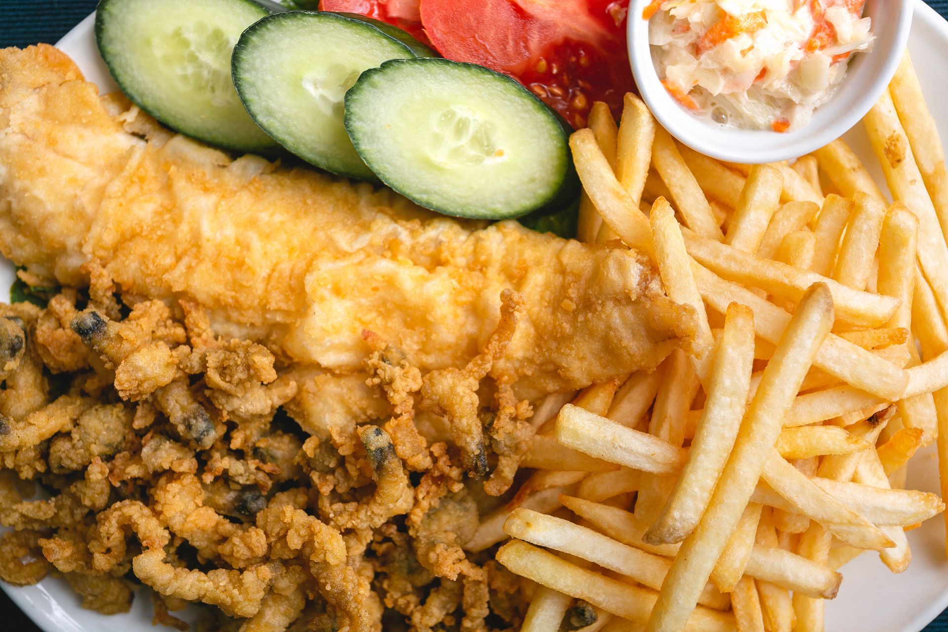 Fries can be substituted with mash, baked potato, rice or onion rings.