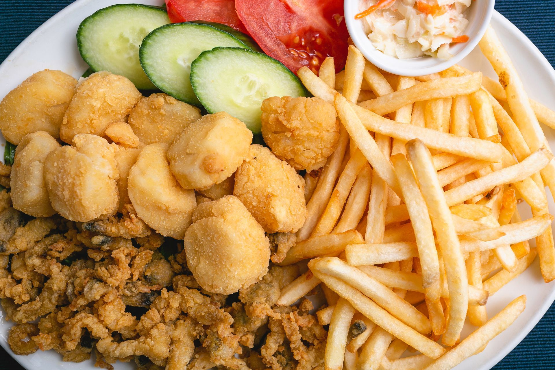 Seashore Deep-Fried Ice Cream! Your choice of Vanilla or Chocolate Ice Cream, rolled in our secret (aka yummy) crumbly coating, and deep-fried to a golden brown! Served with a side of Strawberry, Chocolate or Carmel Sauce and Whipped Cream!